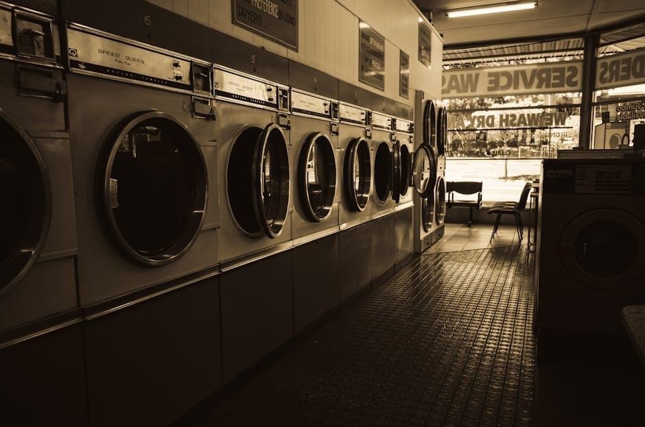 Furthermore, the manual highlights the benefits of features like the EcoSilence Drive, designed to minimize noise and vibration. Users can consult the PDF to compare noise levels across different programs and spin speeds, aiding in selecting quieter operation modes. Understanding these specifications ensures a peaceful laundry experience and minimizes disturbance to the household.